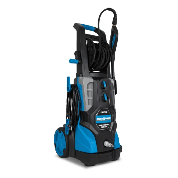 Introducing the Bushranger PW152 240V Pressure Washer – the ultimate cleaning powerhouse. With 2175 PSI (150 bar), this robust unit effortlessly tackles dirt and grime. The reliable induction motor ensures hours of efficient cleaning. Equipped with a 7m metal braid high-pressure hose, storage for the trigger gun, a soft grip handle, and a built-in detergent tank, it offers convenience with every use. Move with ease using the rubber wheels. Transform your home with the cleaning prowess of the Bushranger PW152. Order now for a spotless, rejuvenated living space.